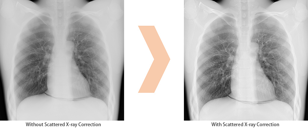 The system can be equipped with a function to remove scatter noise and improve image contrast, making it possible to perform exposures without the use of a grid making it easier to handle FPD’s.